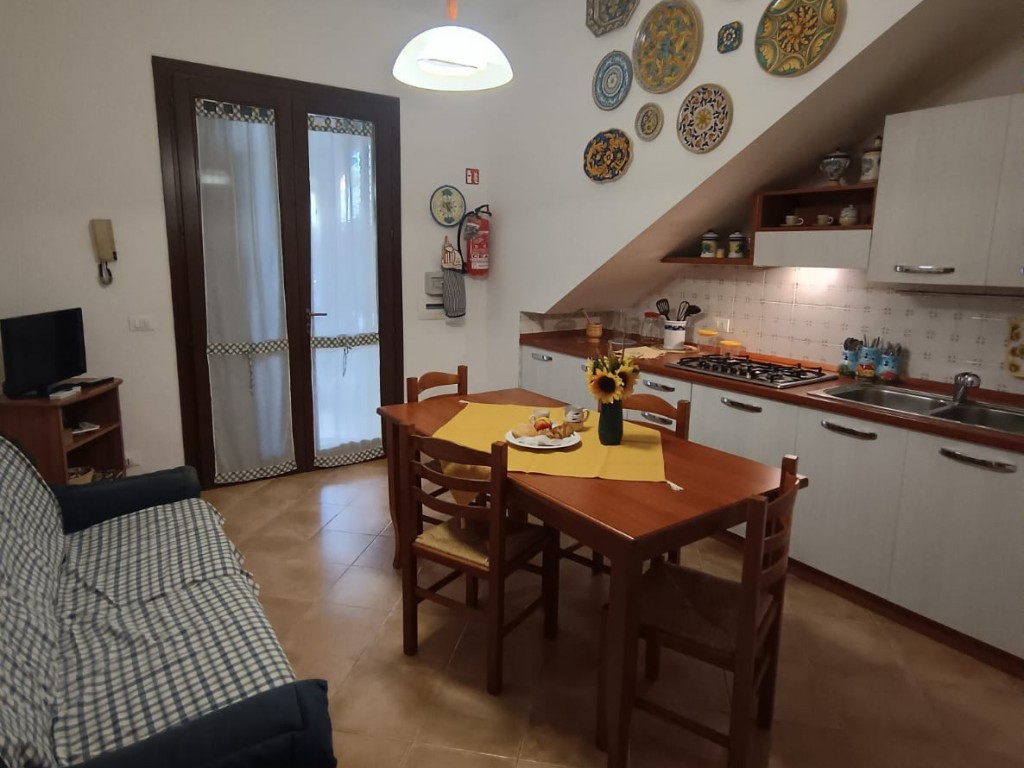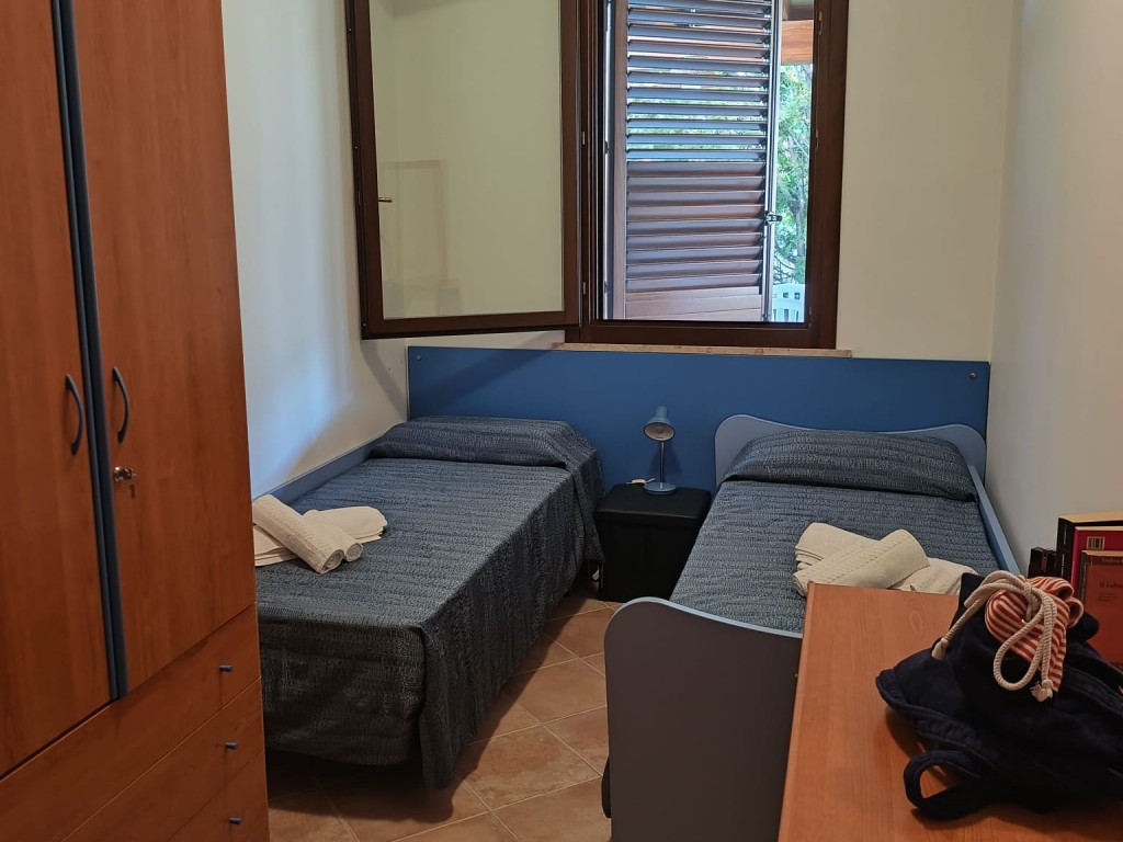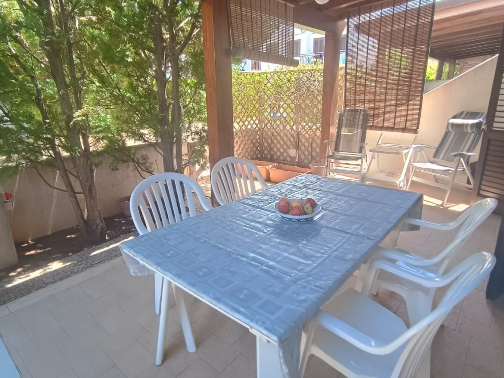Efficienti e confortevoli appartamenti, siti in un complesso residenziale, ideali per famiglie e gruppi di amici, possono ospitare fino a max 4 pax, essendo dotati di una camera matrimoniale, una camera con due letti singoli, un 'ampio soggiorno cucina, oltre ad un ampio giardino fruibile con terrazza coperta e doccia esterna. Sito al piano terra del residence l'appartamento è dotato inoltre di cucina con tutti i comfort e bagno con doccia e lavatrice.